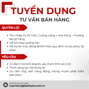 BYD TÂY HỒ TUYỂN DỤNG NHIỀU VỊ TRÍ – ĐI LÀM NGAY