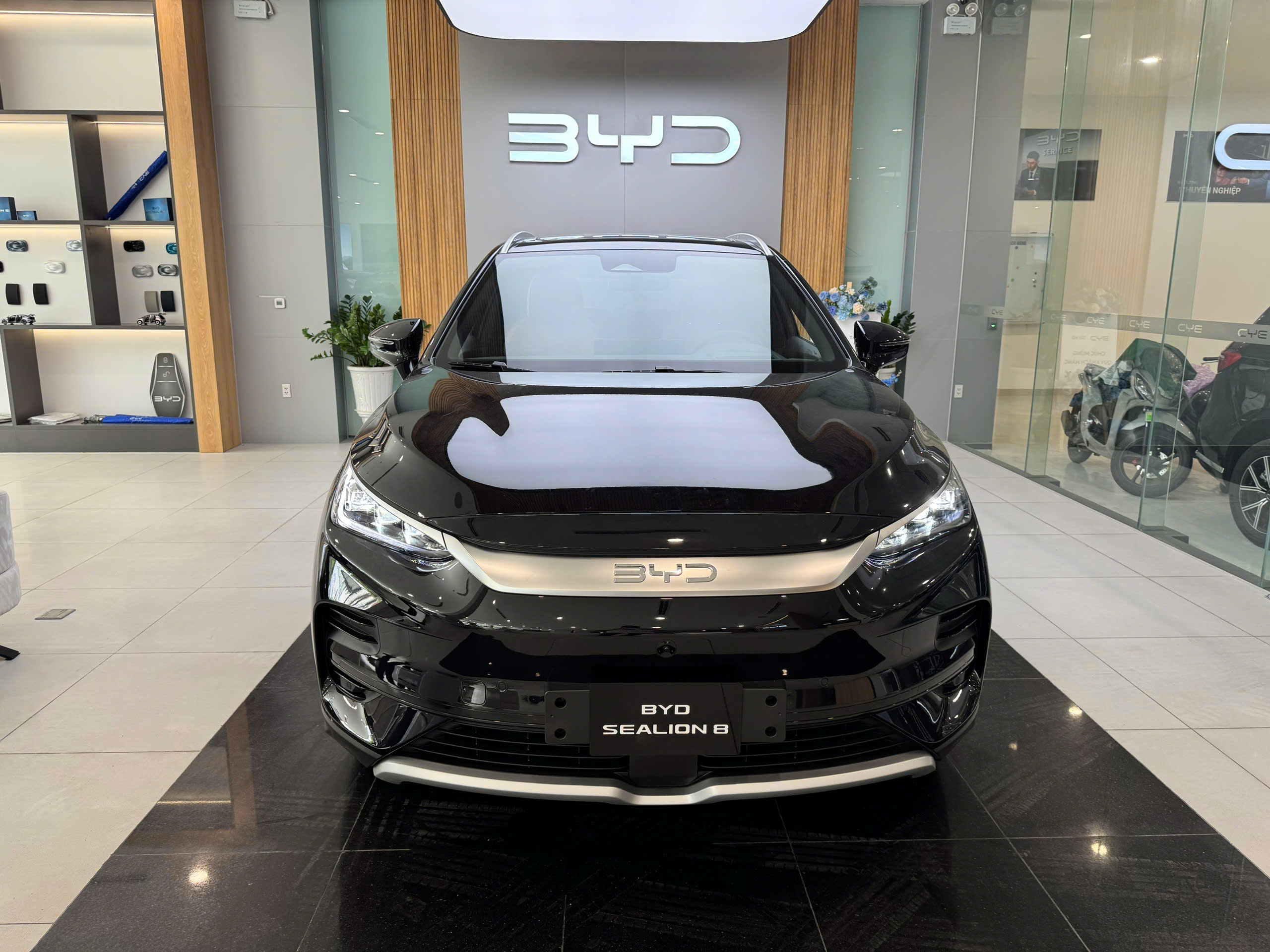 - Logo BYD đặt chính giữa, phía trên là chữ “SEALION 8” nổi bật.