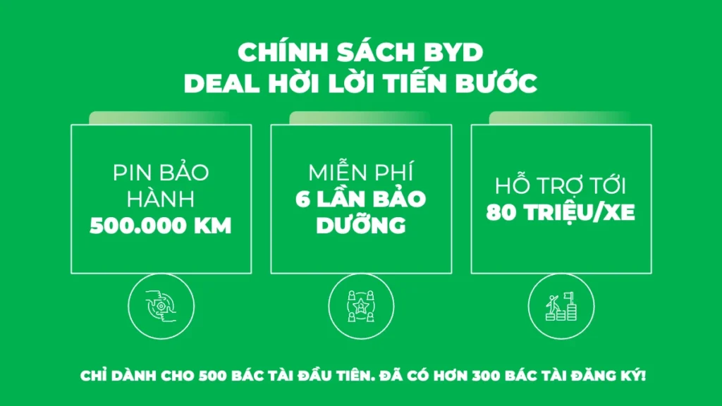Đây là con số ổn định, bền vững, chưa kể đến các ưu đãi thưởng từ các nền tảng công nghệ (Grab, Be, Xanh SM…) và chính sách cộng tác viên của BYD – tặng thêm … triệu đồng/xe cho mỗi lượt giới thiệu